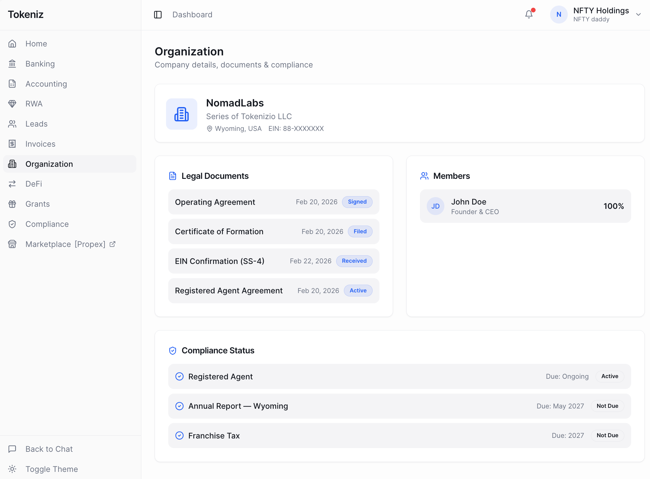 Tokeniz is designed around a simple idea: if businesses and assets increasingly live on the internet, their legal and ownership structures should also exist in a digital-native form.